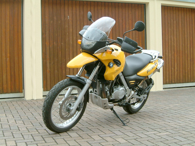 Es handelt sich um eine BMW F650 GS aus dem Jahr 2000.